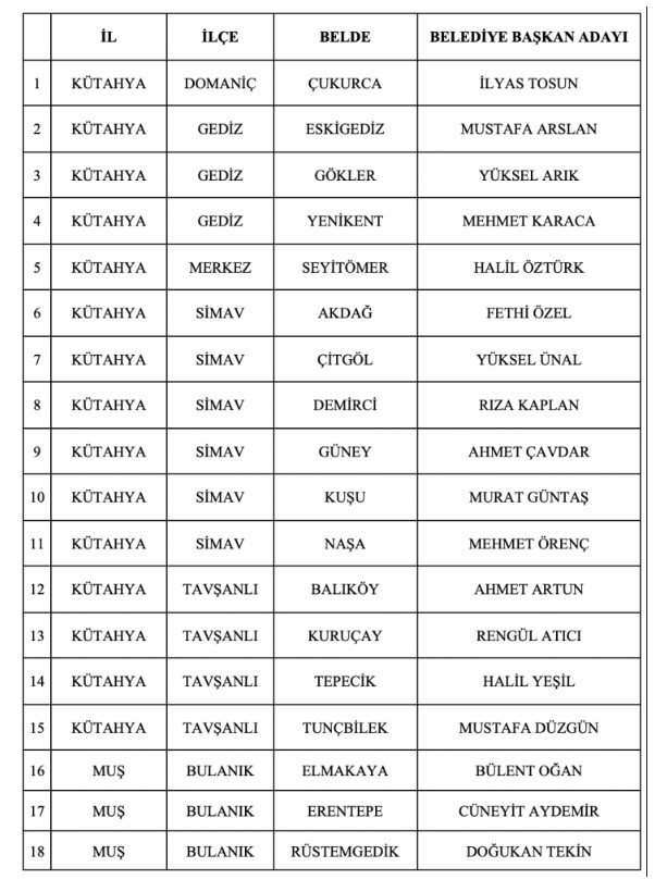 Bu kapsamda, 55 belde belediye başkan adayı daha açıklandı.