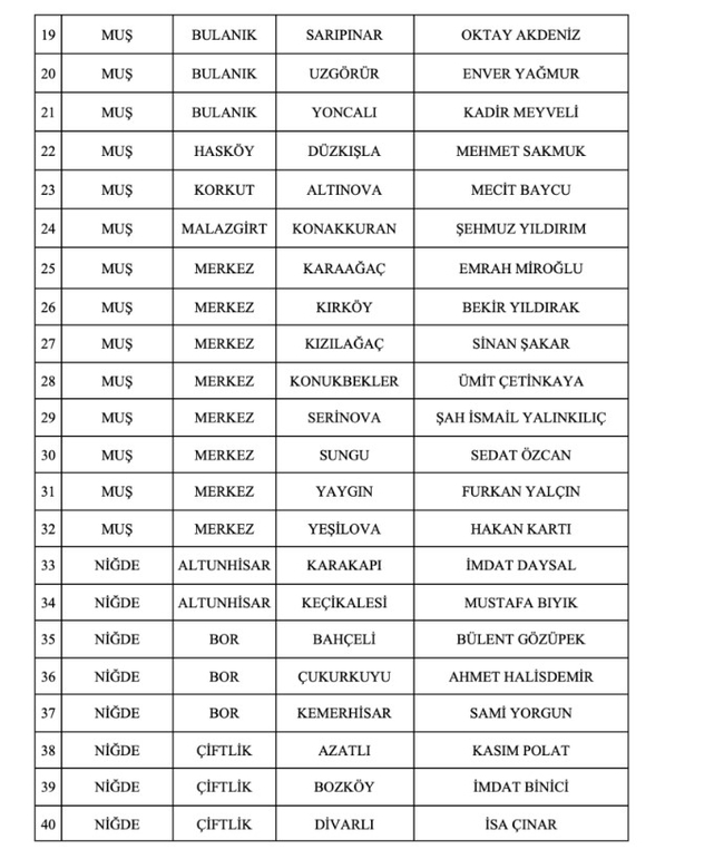 Genel Başkan Yardımcısı Sadir Durmaz'ın yaptığı yazılı açıklamaya göre, partinin yetkili kurullarının değerlendirmeleri ve MHP Genel Başkanı Devlet Bahçeli'nin onayıyla belediye başkanı adayları belirlendi.