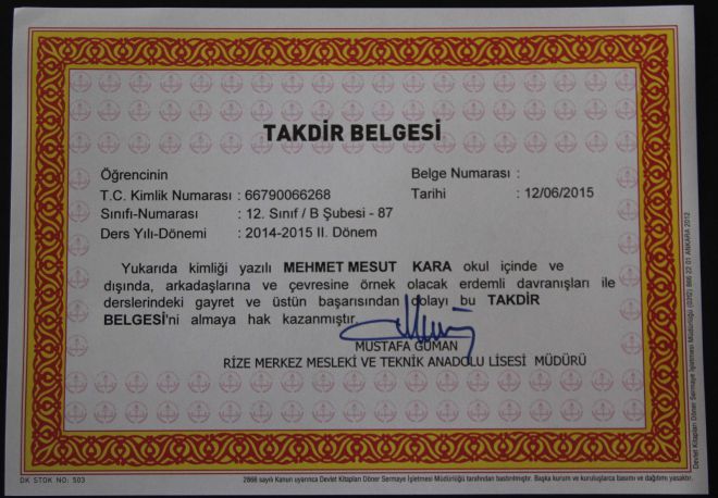 Talihsiz genç karnesini ve takdir belgesini alamadı