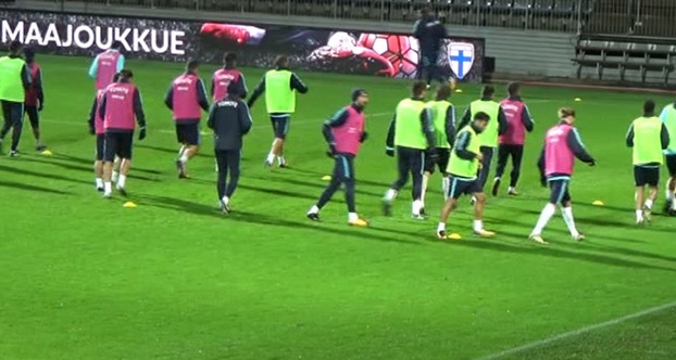 Yağmur altında gerçekleşen antrenmanın basına kapalı bölümünde ise Finlandiya maçının taktik provası yapıldı.