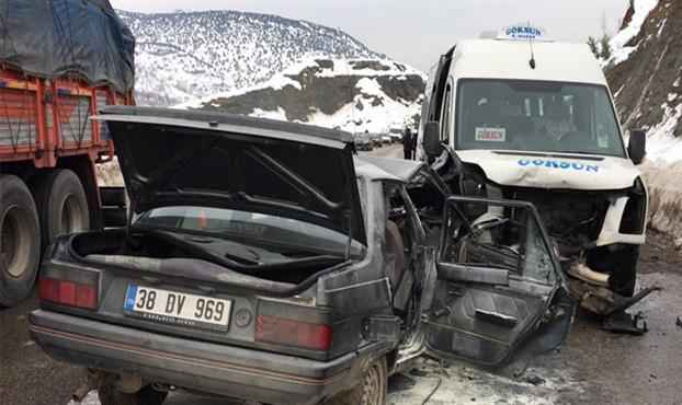 Kaza, Kahramanmaraş-Kayseri karayolu Döngel mevkiinde meydana geldi. Durmuş Bektaş (63) idaresindeki 46 K 5066 plakalı yolcu minibüsü ile karşı yönden gelen Bahattin Kılınç (18) yönetimindeki 38 DV 969 plakalı otomobil kafa kafaya çarpıştı. Çarpışmanın şiddetiyle yolcu minibüsünde bulunan Batuhan Süslü (16), İsminur Gülhan Süslü (9), Miyase Süslü (33), Ümmügülsüm Özyürek (19), Beyhan Gürbüz (15) ile otomobil sürücüsü Bahattin Kılınç ve yanında bulunan Yusuf Kılınç ağır yaralandı. Yaralılar Kahramanmaraş'taki çeşitli hastanelere kaldırılarak tedavi altına alındı. KSÜ Sağlık Uygulama ve Araştırma Hastanesine sevk edilen otomobil sürücüsü Bahattin Kılınç yapılan tüm müdahalelere rağmen kurtarılamadı. Otomobildeki Yusuf Kılınç’ın ise hayati tehlikesinin sürdüğü öğrenildi.