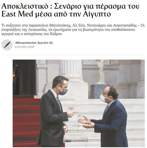 Hellas Journal, yayınladığı analizde Mısır'ın Türkiye'yi Doğu Akdeniz'de saf dışı bırakmak istemediğini kaleme aldı. Yunanistan'ın, Mısır'la yaptığı Doğu Akdeniz'deki kıta sahanlığı anlaşmasına sadık kaldığının belirtildiği analizde Türkiye'nin Libya ile olan anlaşmasının yasa dışı olduğu vurgusu yapıldı. Hellas Journal, Mısır'ın yeni yayınladığı haritayı, Mısır'ın bölgede komplo çalışmalarına başladığı şeklinde yorumladı. Haberi, "Mısır'ın ihanetine uğradık" şeklinde servis eden Hellas Journal, Yunanistan'ın bölgede yaşadığı çıkar çatışması korkusunu da gözler önüne serdi.