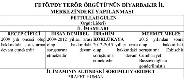 "Diyarbakır'da birinci derece üst düzey sorumlu Recep Çiftçi'dir. 2012–2013 yıllarında sıklıkla İran'a gidip geliyor, Fetullah Gülen'le doğrudan görüşüyordu. Bu kişi DİGİAD'dan da sorumluydu. İftar yemekleri düzenleyip dönemin Valisi Hüseyin Avni Mutlu, Emniyet Müdürleri Mustafa Sağlam, Recep Güven, Ulaştırma Bölge Müdürü Hüseyin Terzioğlu'nun da içinde yer aldığı çok sayıda kamu görevlisiyle bir araya geliyordu. Yurtdışı gezileri organize ediyor ve Euro cinsinde topladığı paraları örgüte himmet olarak gönderiyordu. Benim sürekli gittiğim bir sohbet evi vardı. Ergenekon operasyonlarını haklı çıkarıp bizleri ikna ettiler. Recep Çiftçi sohbetlerde, 'Devlet kadroları bizim arkadaşlarla doludur. Şu an muhafazakâr insanlar daha özgür, daha rahat yaşayabiliyorlarsa ve siz Kur'an kursu açıp talebe yetiştirebiliyorsanız bunlar hizmet kadroları sayesindedir' diyordu" dediler.