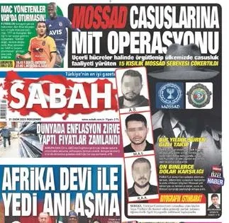 SABAH'ın, Türkiye gündemine bomba gibi düşen casusluk skandalı, Mossad casuslarının verdiği ifadelerle doğrulandı. İsrail gizli servisi elemanları, Mossad'a bir süredir periyodik biçimde casusluk yaptıklarını itiraf etti. İsrail istihbarat servisine para karşılığı casusluk yapan 15 ajandan biri olan M.A.S.'nin ifadesine, SABAH Özel İstihbarat Bölümü ulaştı.