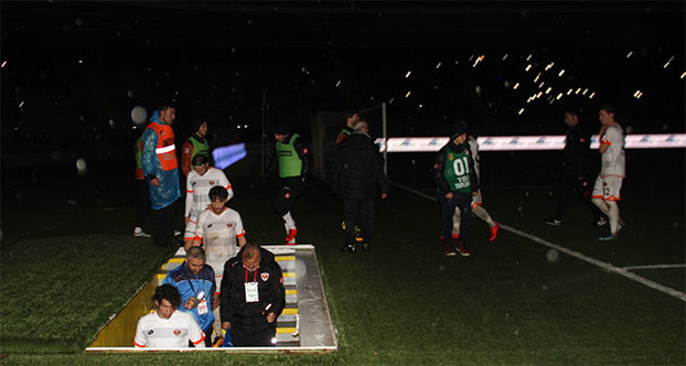 Ardından anons yapılarak maçın ertelendiği açıklandı.
