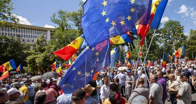 Moldova’da 2 bin kişi parlamento binası önünde seçim sisteminin değiştirilmesi kararını protesto etti.