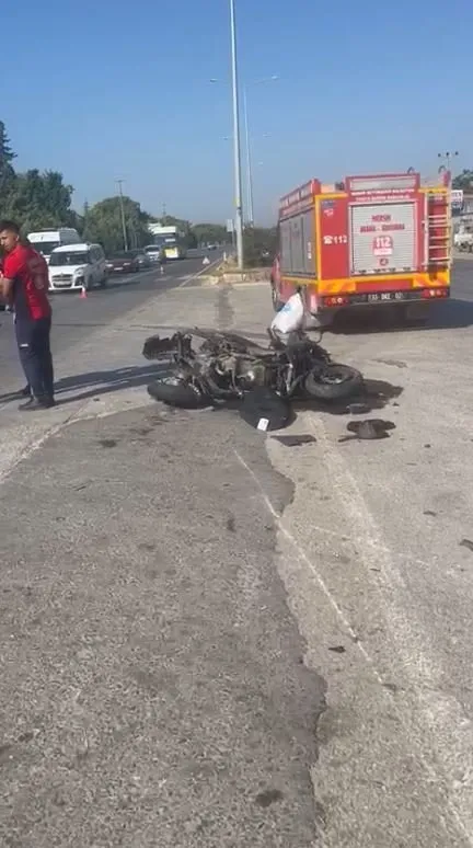 Mersin istikametine seyir halinde olan motosiklet, sürücüsünün direksiyon hakimiyetini kaybetmesi soncu önce kaldırıma vurdu, ardından savrularak refüj ve bariyerlere çarptı. Kazada motosiklette bulunan Mihrac Enes Direk (22) ile Enes İmir (24) savrularak yere düştü. Kazayı görenlerin haber vermesi üzerine bölgeye itfaiye, sağlık ve polis ekibi sevk edildi.