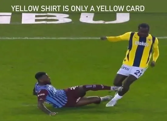 Fenerbahçe Teknik Direktörü Jose Mourinho, sosyal medya hesabından Trabzonspor maçıyla ilgili bir paylaşımda bulundu. Portekizli teknik adam, Stefano Denswil ve Bright Osayi-Samuel arasında yaşanan ve kırmızı kart bekledikleri pozisyonu paylaştı. Mourinho, bu paylaşımına, "Sarı formalıya yapılınca sadece sarı kart" ifadelerini yazdı.