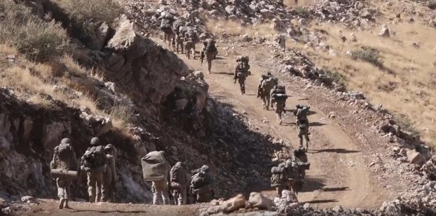 Görüntülerde bir asker, silah arkadaşlarına, "Kahraman komandolar, kahraman silah arkadaşlarım; bugün oldukça önemli bir operasyona katılacağız. Operasyon bölgesinde silah arkadaşlarımız bizleri beklemekte.