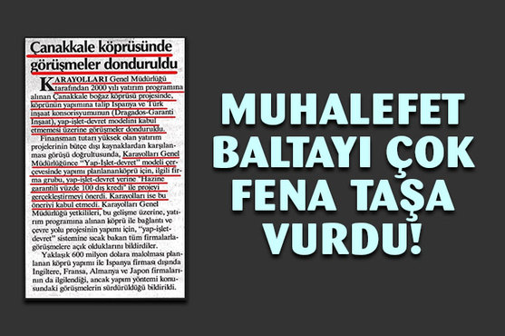 Cumhurbaşkanı Recep Tayyip Erdoğan tarafından açılışı gerçekleştirilen ve Türkiye'nin mega projeleri arasında yer alan 1915 Çanakkale Köprüsü ile ilgili muhalefetin "yandaş müteahhitlerin zengin edildiği" yönündeki söylemleri ters tepti. 2000 yılının ekim ayında basında yer alan bir haber, "istemezükçülerin" asıl niyetini gözler önüne serdi.