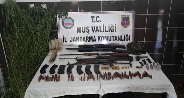 Yapılan aramada, bir adet kalaşnikof tüfek ve 6 adet kalaşnikof tüfek şarjörü, bir adet G-1 piyade tüfeği ve bir adet G-1 tüfek şarjörü, bir adet tabanca ve 3 adet tabanca şarjörü, 646 adet kalaşnikof fişeği, 111 adet 9 mm tabanca fişeği, 15 adet 7.65 mm tabanca fişeği, 3 adet av tüfeği, 196 kök dişi Hint keneviri ele geçirilmiştir. Tespit edilen 16 şahsın da adli işlemleri devam etmektedir. Halkımızın huzur ve güvenliği için ilimiz genelinde terörle mücadele kapsamındaki operasyonlarımıza kararlılıkla devam edilecektir" ifadeleri kullanıldı.