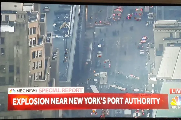 New York Polis Departmanı Twitter'dan yaptığı açıklamada Manhattan'da henüz bilinmeyen bir sebeple bir patlama meydana geldiğini açıkladı. Açıklamada A,C ve E terminallerinin boşaltıldığını bildirildi.