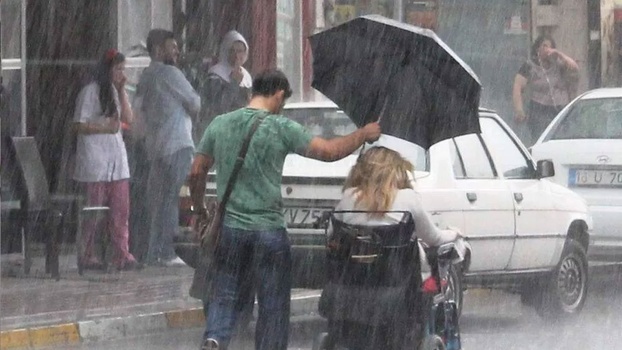 Bursa’da engelli arabasıyla yağmur altında kalan arkadaşı Bennur Karaburun’a şemsiye tutan Samet Ateş, 9 sene sonra eski milletvekili Bennur Karaburun'a Osmangazi Köprüsü’nde evlilik teklif etti.
