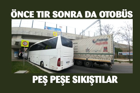 Önce tır, ardından tur otobüsü alt geçide sıkıştı