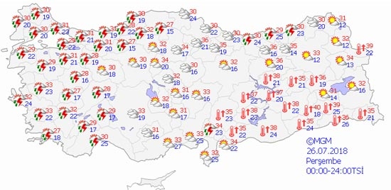 Meteoroloji yeni haftanın hava durumunu yayınladı. Özellikle dün İstanbul'da etkili olan sağanak yağıştan sonra yeni haftanın hava durumu da merak edilmeye başlandı. Temmuz ayında etkili olan sıcaklıklar etkisini göstermeye devam edecek. Bugün yurdun büyük bir bölümü sıcak havanın etkisi altında olacak. Orta ve Doğu Karadeniz'de ise sağanak yağış kendini gösterecek.