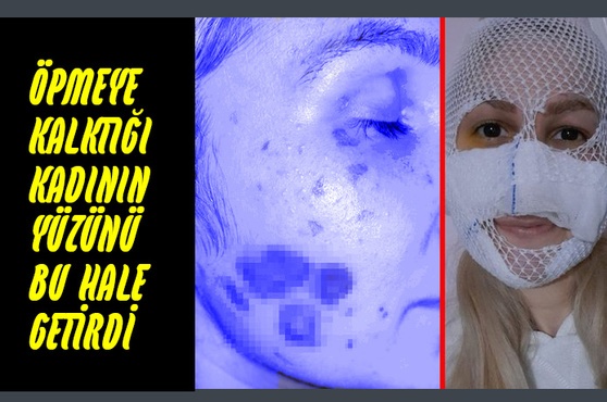 Öpmeye kalktığı kadının yüzünü tanınmaz hale getirdi