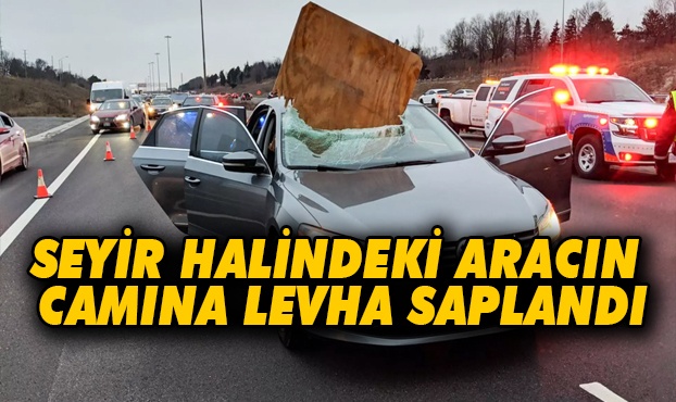 Kanada’nın Toronto kentindeki bir otobanda seyir halindeki bir aracın camından içeri büyük bir kontrplak levha düştü.