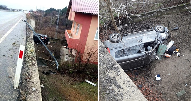 Otomobil evin bahçesine uçtu: 1 ölü, 2 yaralı