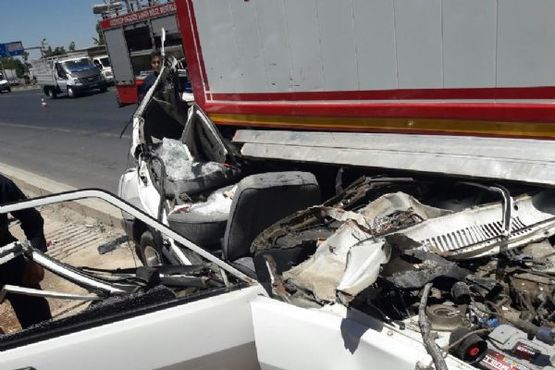 Gaziantep'te aşırı hızlı seyreden otomobil, emniyet şeridinde park halinde bulunan bir kamyonun altına girdi. Kazada kağıt gibi ezilen otomobilin sürücüsü yaşamını yitirirken, asker olduğu sanılan sürücünün fabrika işçisi olduğu ortaya çıktı
