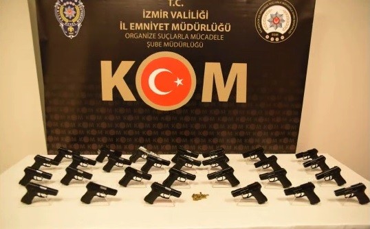 İzmir İl Emniyet Müdürlüğü Organize Suçlarla Mücadele Şube Müdürlüğü ekipleri, D.D. adlı bir kişinin il dışından İzmir'e çok miktarda silah getireceği bilgisi alınması üzerine çalışma başlattı. D.D.'nin kullandığı aracı belirleyerek takibe alan ekipler, dün İzmir'e gelen aracı Akalan Kavşağı yakınlarında durdurdu. Araçta arama yapan polis ekipleri, otomobilin kapısının iç bölmelerine gizlenmiş vaziyette seri atış özelliğine sahip 28 adet tabanca ele geçirdi. D.D., polis ekipleri tarafından gözaltına alınırken, şüphelinin emniyetteki işlemlerinin sürdüğü öğrenildi.