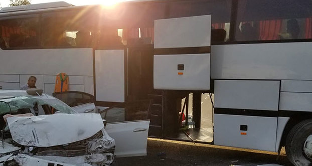 Otomobil tur otobüsüne çarptı: 5 yaralı