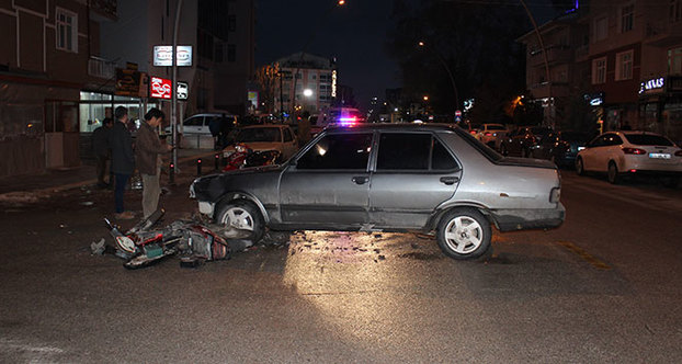 Otomobille elektrikli bisiklet çarpıştı