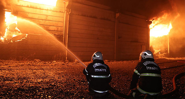 Kahramanmaraş’ta bir tekstil fabrikasının pamuk deposunda yangın çıktı. İtfaiye ekiplerinin yangına müdahalesi sürüyor.