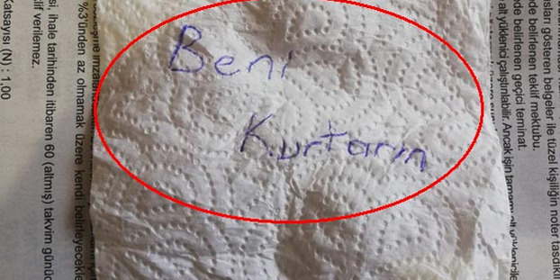 Peçeteye yazdığı bu not sayesinde kurtarıldı