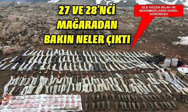 Operasyon bölgesinde şimdiye kadar terör örgütü mensuplarının kullandığı 28 mağara tespit edildi. ‘Atikler’ komando birliğini bugün gerçekleştirdiği operasyon kapsamında Şırnak-Kato Dağı bölesinde yeni tespit edilen 27’inci ve 28’inci mağarada yapılan aramada 108 kaleşnikof piyade tüfeği, 1 biksi makineli tüfeği, 1 kanas keskin nişancı tüfeği ile 11 bin 500 biksi mühimmatı, 2 bin 400 adet M-16 mühimmatı, 600 kanas mühimmatı, 160 doçka mühimmatı, 149 RPG-7 roketatar mühimmatı, 40 uçaksavar mühimmatı, 37 havan mühimmatı, 35 el bombası ve 2 bin 600 elektrikli fünye ele geçirildi.