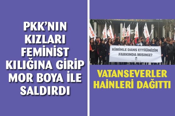 PKK'nın kızları Feminist kılığına girip Ünvirsitelilere mor boya fırlattı