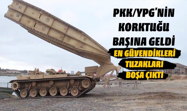PKK/YPG'li hainlerin 5 yıldır çalışıp didinip kazdığı çukurları boşa çıkardık. Genelkurmay'daki tank köprüleri bu çukurları bir işe yaramaz hale getirdi. Demir köprüler sayesinde hendekler kolaylıkla aşılacak.