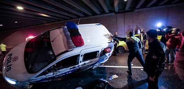 Polis ekipleri ile taksi şoförü arasında yaşanan kovalamaca sırasında Fatih ilçesi Topkapı alt geçidinde trafik kazası meydana geldi. Kazada bir polis aracı devrilirken araçta bulunan 2 polis hafif yaralandı.