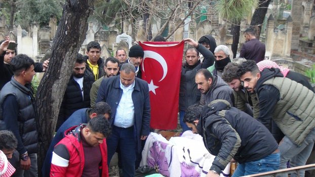 Öte yandan cenazede şahsın yakınlarının Türk bayrağı açtığı görüldü.