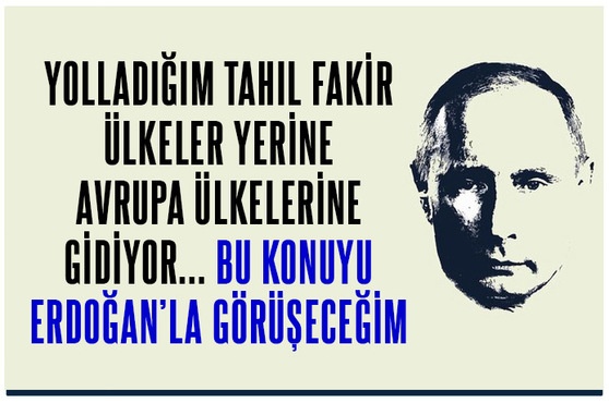 Putin : İzin verdiğim tahıl fakir ülkeler yerine Avrupa'ya gidiyor. Bu konuyu Erdoğan'la konuşacağım