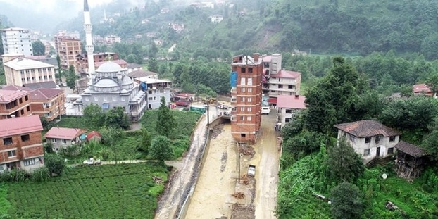 Rize'de, 2 Ağustos'ta, 24 saatte metrekareye düşen 100 kilogram dolayında şiddetli yağışın etkisiyle oluşan sel ve heyelanda merkeze bağlı Muradiye ve Salarha beldelerinde ev ve işyerlerinin zemin ve bodrum katlarını su bastı, alt yapıda hasarlar meydana geldi. Muradiye beldesi Kömürcüler köyünde, gündeme gelen dere yatağına inşa edilen 7 katlı bina da selden hasar gördü. 15 yıl önce 3 katlı inşa edilen, ardından ise ilave katlarla 7 kata çıkan dere yatağındaki bina için sahibi 'imar barışı' başvurusunda bulundu. Tartışılan 7 katlı bina ile ilgili karar verildi. Çevre ve Şehircilik Bakanlığı arazisini kamulaştıracağı bina için yıkım kararıaldı. Bina sahipleri ile imzalanacak sözleşmenin ardından bakanlık, kamulaştıracağı araziyi yeşil alan ilan edecek, binanın yıkımını gerçekleştirecek.
