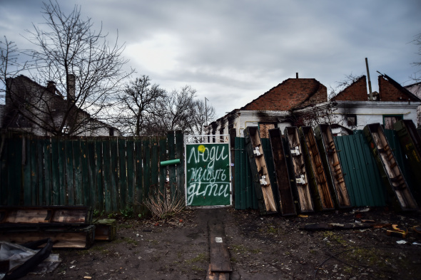 Kiev bölgesine bağlı Andriivka köyünün halkı, evlerinin kapısına “çocuk ve kadınlar var” yazmasına rağmen Rus ordusunun saldırılarına maruz kaldı.
