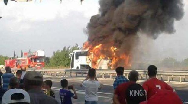 Olayı anlatan otobüs şoförü Melih Can Türkoğlu, seyir halinde giderken arkadan birden dumanların geldiğini fark ederek aracı sağa çektiklerini belirterek, “Seyir halinde giderken bir anda arkadan dumanların geldiğini fark edip sağa çektik. Üç dakika içinde oldu her şey Antalya'dan gelip İstanbul'a devam ediyorduk. Otobüste net 20 yolcumuz vardı” dedi.
