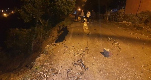 Hatay’ın Samandağ ilçesinde aşırı yağış nedeniyle yolda çökme meydana geldi.