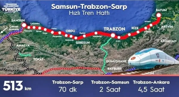 Samsun- Sarp arası demiryolu ile 70 dakika olacak