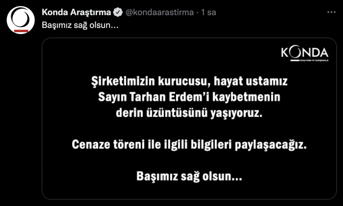 CHP'li birçok isim paylaşım yaparak taziye dileklerimi iletirken KONDA'dan da bir açıklama yayınlandı.