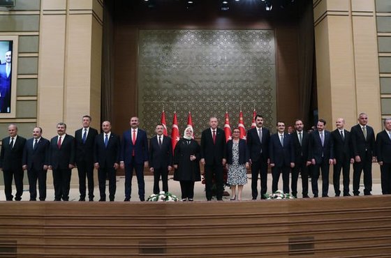 Cumhurbaşkanı Recep Tayyip Erdoğan, yürürlüğe giren Cumhurbaşkanlığı Hükümet Sistemi'nin ilk bakanlarını Cumhurbaşkanlığı Külliyesi'nde düzenlenen toplantıda açıkladı.