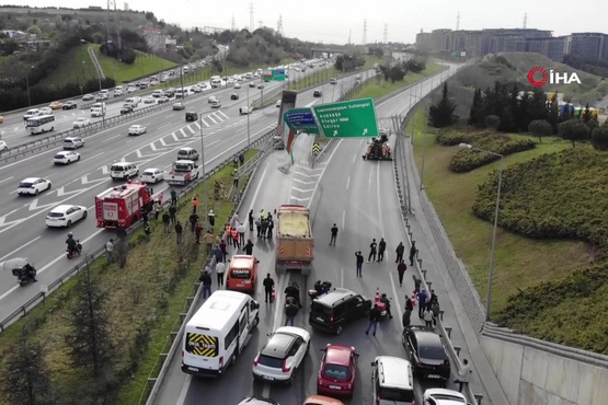 Olay, saat 17.00 sıralarında meydana geldi. Seyrantepe TEM Hasdal Kavşağı istikametinde seyir halinde ilerleyen bir tırın damperi açıldı.
