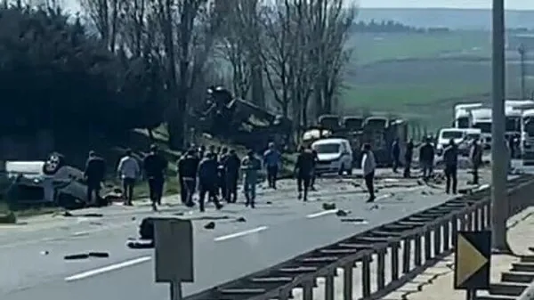 Son dakika haberi: TEM Otoyolu'nun Silivri bölgesinde korkunç bir kaza meydana geldi. Zincirleme kaza sonrası yol trafiğe kapandı. Çok sayıda yaralı olduğu bilgisi paylaşılırken, ambulanslar olay yerine istikametine sevk edildi. İstanbul Valiliği Silivri'deki kazada 6 kişinin öldüğü 3 kişinin ise yaralandığını açıkladı. Katliam gibi kazanın görüntüleri ortaya çıktı.
