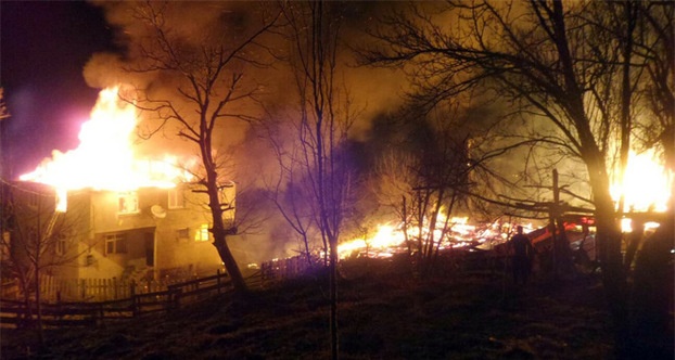 Sinop’un Erfelek ilçesinde çıkan yangında 2 katlı ev, samanlık ve ahır kullanılamaz hale geldi.