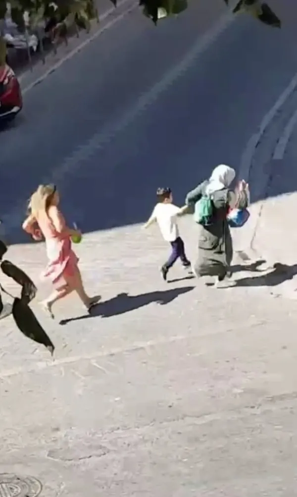 Mehmet Akif Ersoy Mahallesi'nde yaşanan olayda, kadının ilk olarak başörtülü bir kadınla kavga ettiği görüldü. Görüntünün devamında ise caddede küçük çocuğuyla yürüyen başka bir başörtülü kadını kovalayan kadının bağırdığı anlar kameralara yansıdı.