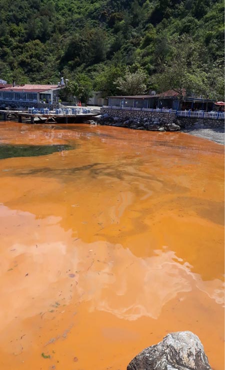 Sucul ekosistemlerde bir veya birkaç alg (fitoplankton) türünün popülasyonlarının artmasına bağlı olarak sudaki oksijen seviyesinin azalması nedeniyle ölmeleri sonucu su yüzeyi kırmızı veya kahverengi bir renge bürünüyor.