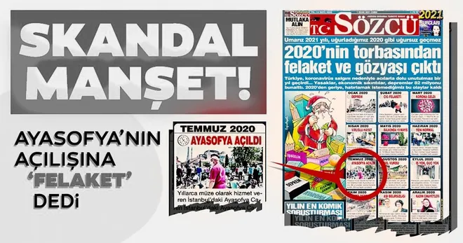 Sözcü '2020 felaketleri listesine' Ayasofya Camii'nin açılışını koydu.. Yeni yılda Türkiye'yi ayaklandıran bu alçaklığa Erdoğan'da sessiz kalmadı..