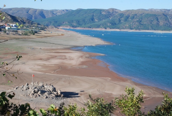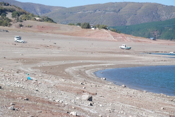 Tokat'ın Almus ilçesinde bulunan baraj gölünde su kıyı şeridinden yaklaşık 100150 metre çekilerek yaklaşık 10 metre düşerken, tekne ile gidilebilen kayalık ortaya çıktı.