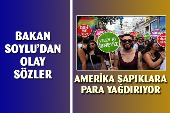 İçişleri Bakanı Süleyman Soylu, ABD'nin Ankara'da sapkın LGBT derneklerine 22 milyon dolar yardım ettiğini ifade ederek, “Neyle karşı karşıya kaldığımızı ve hangi cereyanla karşı karşıya kaldığımızı anlayın. Aslında temel hedefin inancı, kimliği ve bu coğrafyadaki varlığı olduğunu ifade etmem için bundan sonra kelimelerle ifade etmeme gerek var mı acaba?” açıklamasında bulundu.