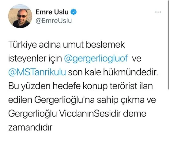 Gergerlioğlu’na destek FETÖ’cü Emre Uslu’dan geldi